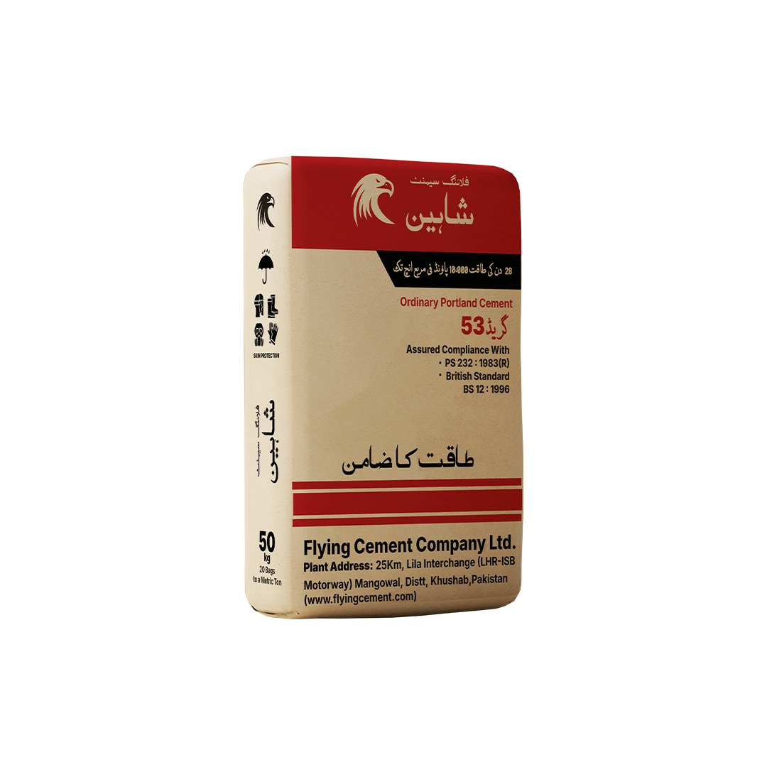 Shaheen Flying Cement OPC provides good strength development and smooth workability in mixing.